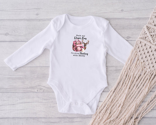 Baby Bodysuit, Pink Hunting with Daddy One Piece Baby Suit, Baby Gift, Long / Short Sleeve, 0-18 Months size