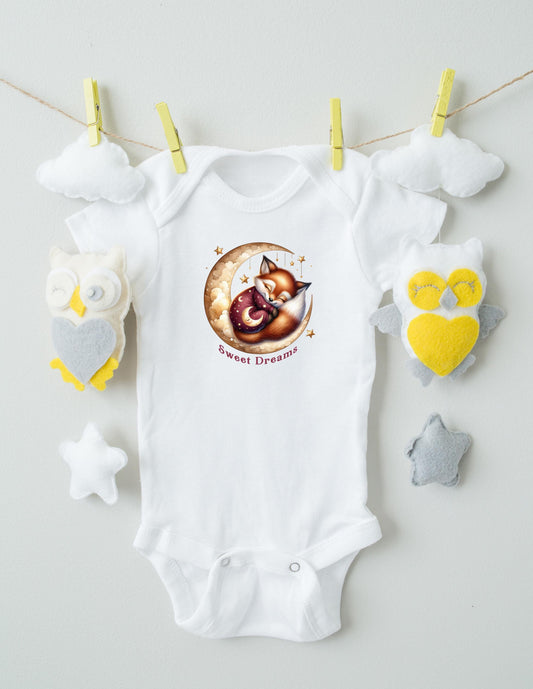 Baby Bodysuit, Sweet Dreams Fox One Piece Baby Suit, Baby Gift, Long / Short Sleeve, 0-18 Months size
