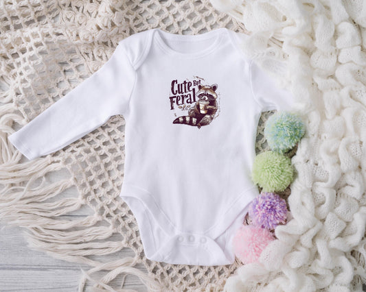Baby Bodysuit, Cute but Feral Raccoon One Piece Baby Suit, Baby Gift, Long / Short Sleeve, 0-18 Months size