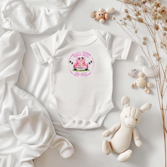 Baby Bodysuit, Pink Truck Buck and Bows One Piece Baby Suit, Baby Gift, Long / Short Sleeve, 0-18 Months size