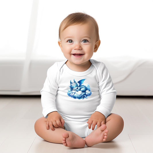Baby Bodysuit, Sleeping Blue Dragon One Piece Baby Suit, Baby Gift, Long / Short Sleeve, 0-18 Months size