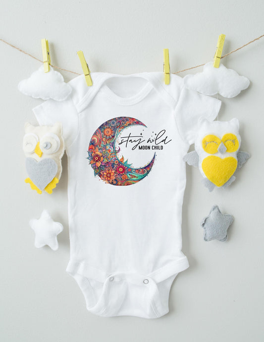 Baby Bodysuit, Stay Wild Moon Child One Piece Baby Suit, Baby Gift, Black or White, 0-18 Months size