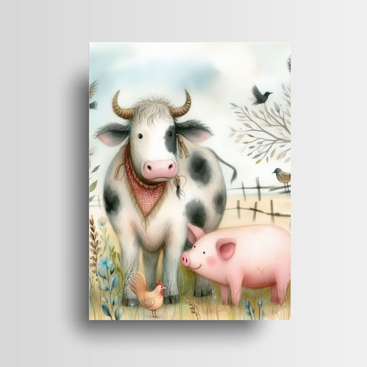 11x14 Cow and Pig Nursery Wall Art Canvas Print
