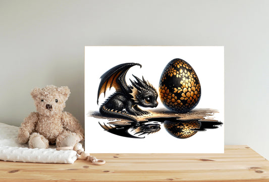 20x16 Black Dragon Reflection Wall Art Canvas Print
