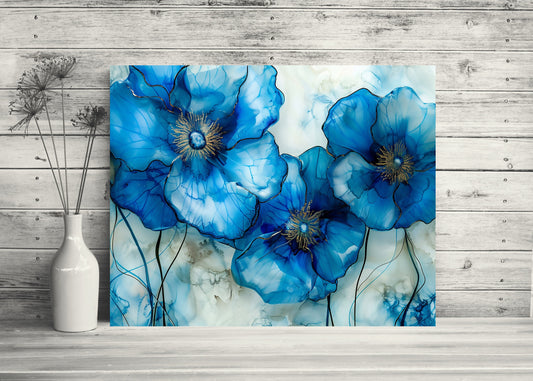 20x16 Blue Maribell Floral Wall Art Canvas Print