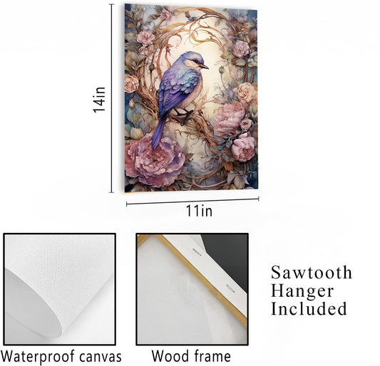11x14 Cabbage Roses and Bird Wall Art Canvas Print