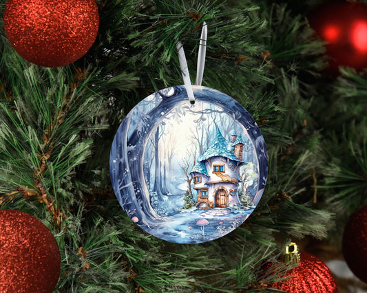 Christmas Ornament, Winter Fairy House Ceramic Christmas Ornament, Christmas Decorations