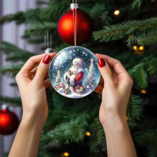 Santa in Snow Globe Christmas Ornament, Ceramic Christmas Ornament, Christmas Decorations