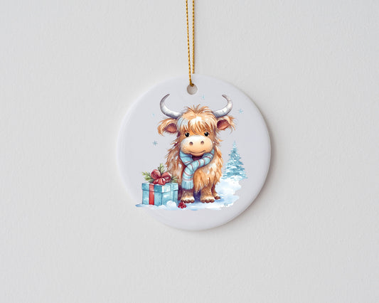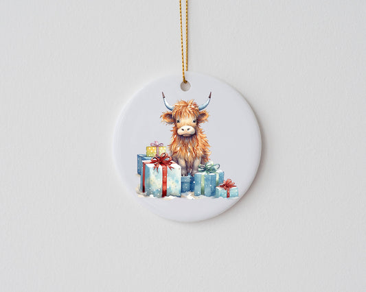 New Release Christmas Ornament, Highland Cow and Presents Ceramic Christmas Ornament