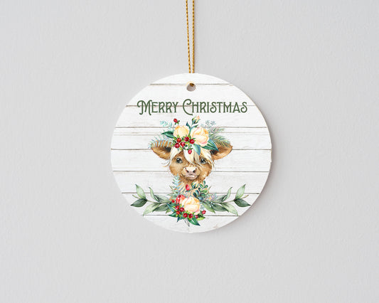 New Release Christmas Ornament, Merry Christmas Floral Cow Ceramic Christmas Ornament