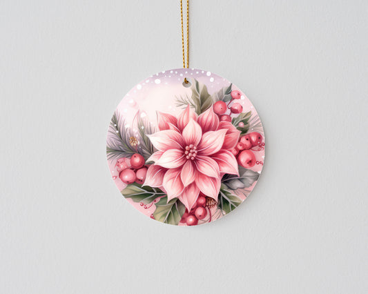 New Release Christmas Ornament, Pink Poinsettia Ceramic Christmas Ornament