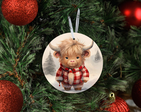 New Release Christmas Ornament, Highland Cow in Red Check Coat Ceramic Christmas Ornament
