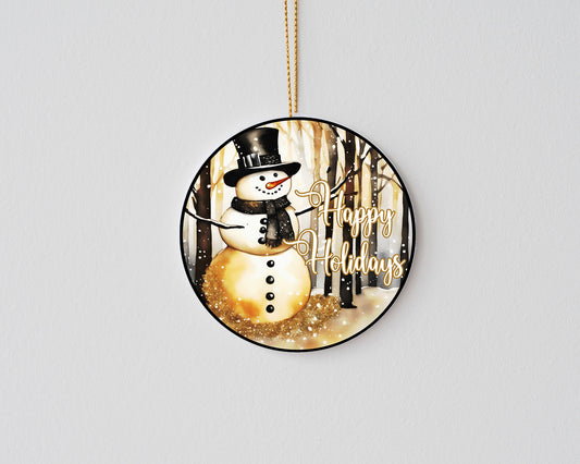 New Release Christmas Ornament, Happy Holidays Gold Snowman Ceramic Christmas Ornament