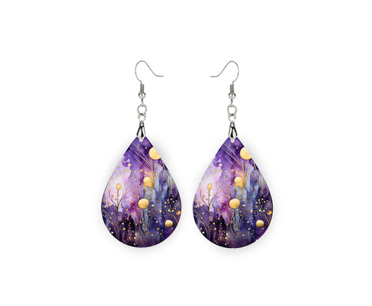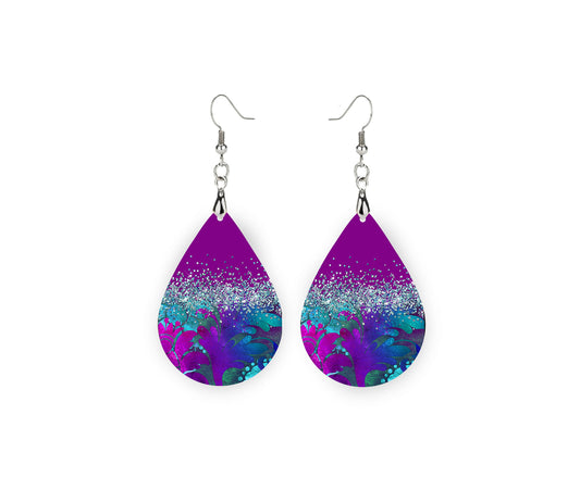 Purple Haze Tear Drop Dangle Pendientes impresos Joyería hecha a mano