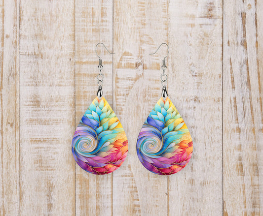 Pendientes estampados con forma de lágrima y diseño de remolino de arco iris, joyería hecha a mano
