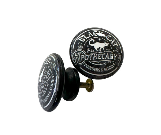 Cabinet Knobs, Set of 6 Black Cat Apothecary Wood Cabinet Knobs, Drawer Knobs and Pulls, Kitchen Cabinet Knobs