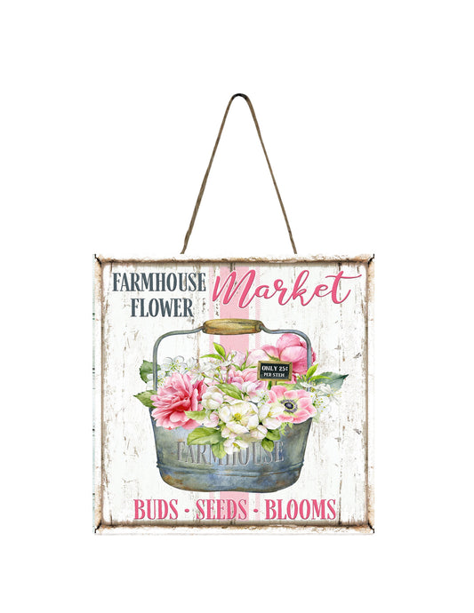 Mini letrero de madera hecho a mano con estampado de mercado de flores de granja