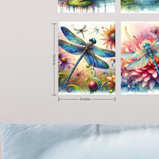 Set of 4 8x10 Beautiful Dragonfly Wall Art, Canvas Prints, Contemporary Wall Art