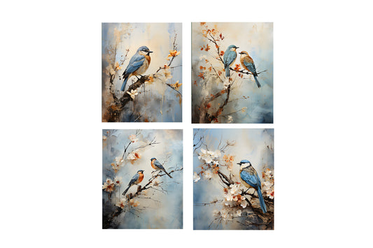 Set of 4 8x10 Birds on a Limb Wall Art, Canvas Prints, Contemporary Wall Art