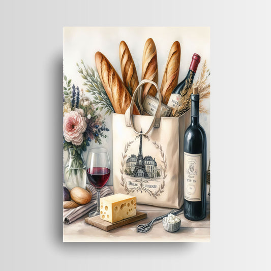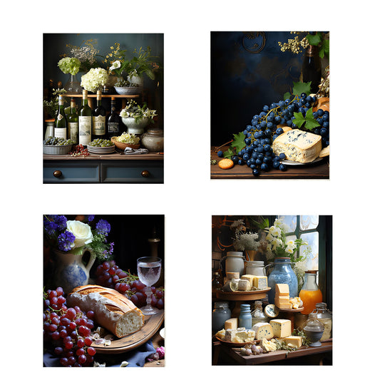 Set of 4 8x10 French Wine and Cheese Wall Art Canvas Print, Contemporary Wall Art