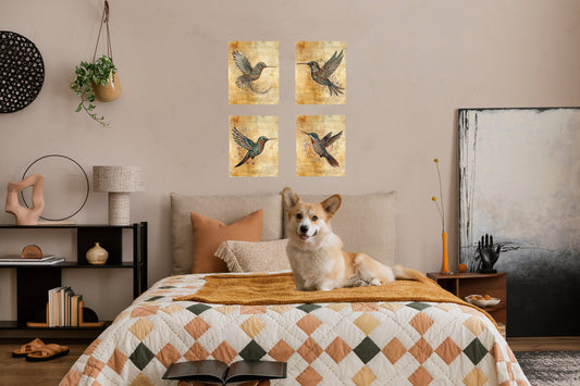 Set of 4 8x10 Hummingbirds in Paisley Canvas Print, Contemporary Wall Art