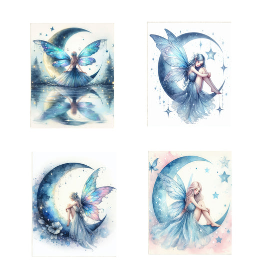 Set of 4 8x10 Blue Moon Fairy Wall Art, Canvas Prints, Contemporary Wall Art