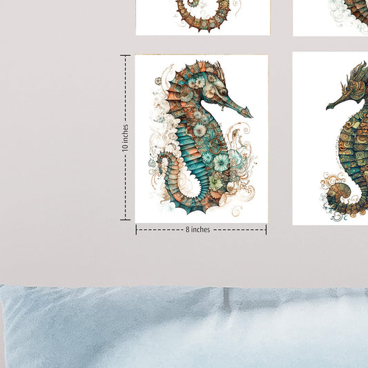 Set of 4 8x10 Paisley Seahorses Coastal Canvas Print, Contemporary Wall Art