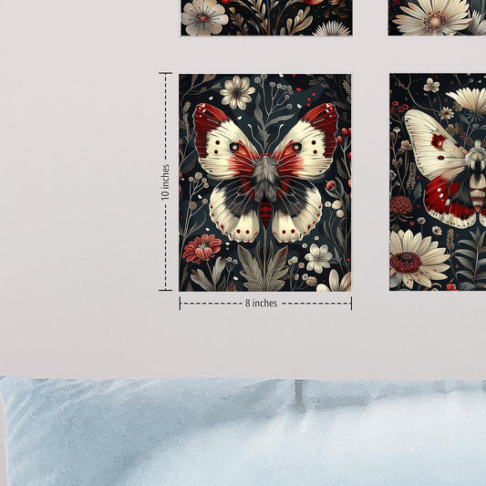Set of 4 8x10 Red and White Butterflies Canvas Print, Contemporary Wall Art