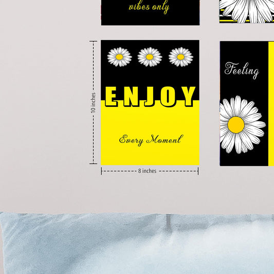 Set of 4 8x10 Yellow and Black Daisy Positive Vibes Canvas Print, Contemporary Wall Art