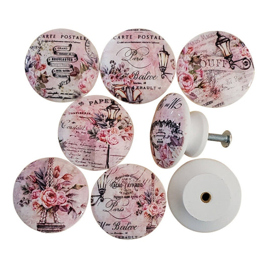 Set of 8 Paris Romance Wood Cabinet Knobs