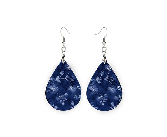 Blue Willow Floral Tear Drop Dangle Printed Earrings Blue White Flowers Jewelry