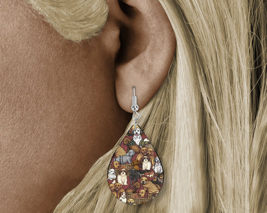 Dog Lovers Tear Drop Dangle Printed Earrings Jewelry Handmade