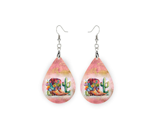 Boots and Cactus Tear Drop Dangle Printed Earrings Jewelry Handmade