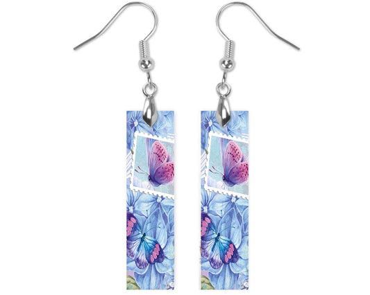Butterfly Garden Bar Dangle Printed Earrings Jewelry Handmade
