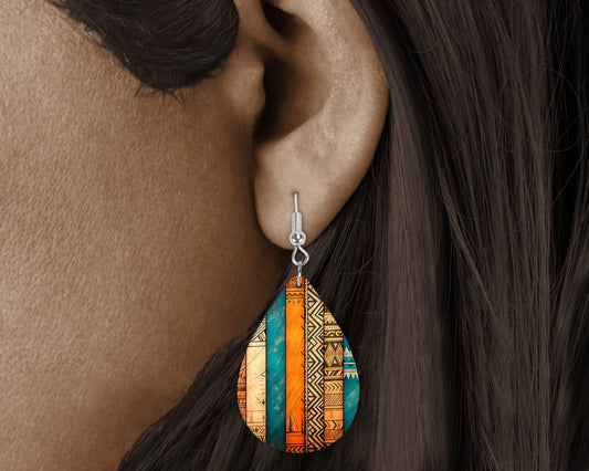 New Release Aztec Stripes Tribal Tear Drop Dangle Printed Earrings Jewelry Handmade