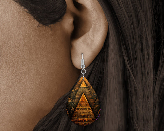 New Release Aztec Pyramids Tear Drop Dangle Printed Earrings Jewelry Handmade