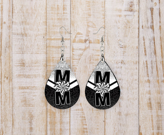 New Release Black and Silver Cheer Mom, Tear Drop Dangle Printed Earrings Jewelry Handmade