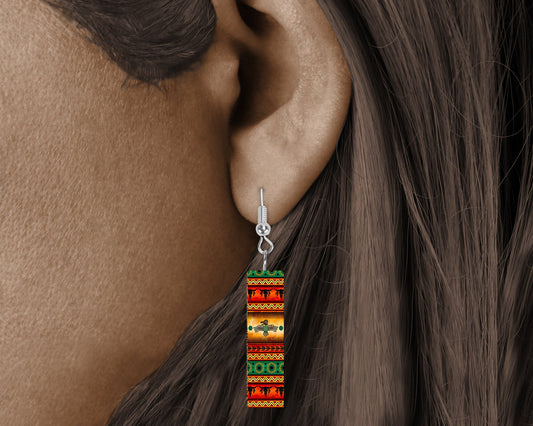 New Release Earrings, Aztec Thunderbird Tribal Bar Dangle Printed Earrings Jewelry Handmade