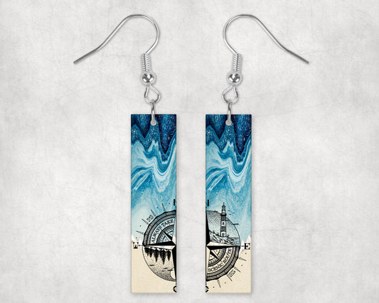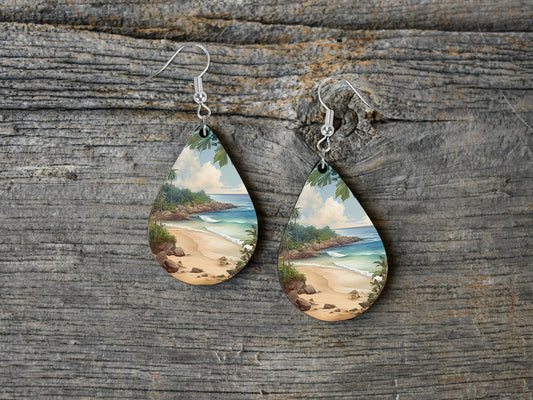 New Release Coastal Earrings, Beach Coastline Tear Drop Dangle Printed Earrings Jewelry Handmade