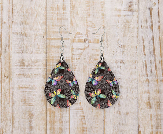New Release Butterfly Wings Tear Drop Dangle Printed Earrings Jewelry Handmade