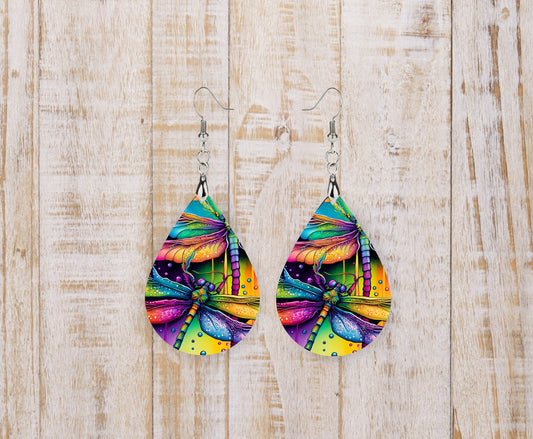 New Release Color Drip Dragonfly Tear Drop Dangle Printed Earrings Jewelry Handmade