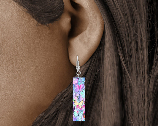 New Release Earrings, Beautiful Butterflies Bar Dangle Printed Earrings Jewelry Handmade