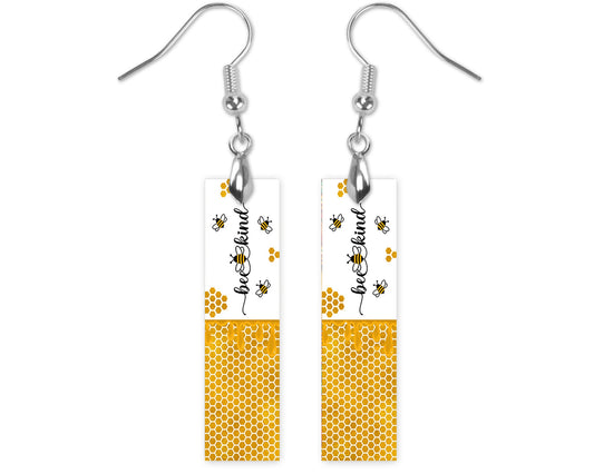New Release Earrings, Bee Kind Bar Dangle Printed Earrings Jewelry Handmade
