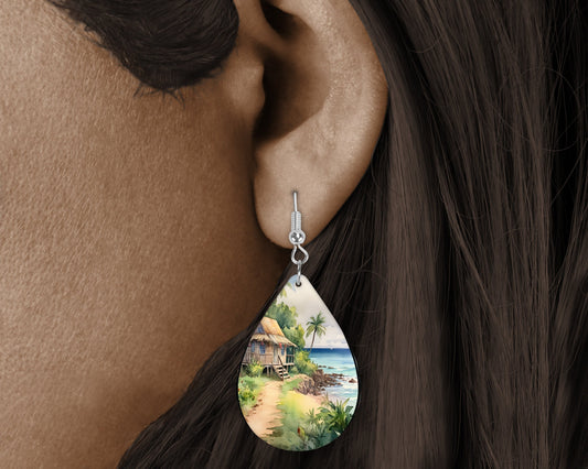 New Release Coastal Earrings, Beach Paradise Tear Drop Dangle Printed Earrings Jewelry Handmade