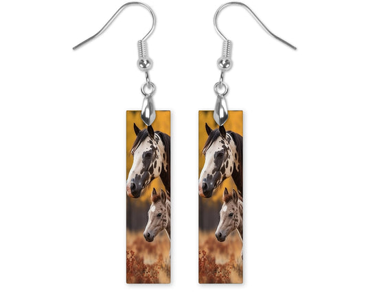 New Release Earrings, Appaloosa Horse and Foal Bar Dangle Printed Earrings Jewelry Handmade