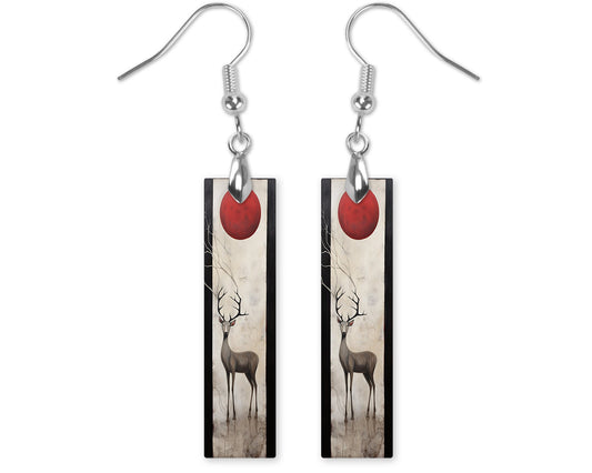 New Release Earrings, Deer and Red Moon Bar Dangle Printed Earrings Jewelry Handmade