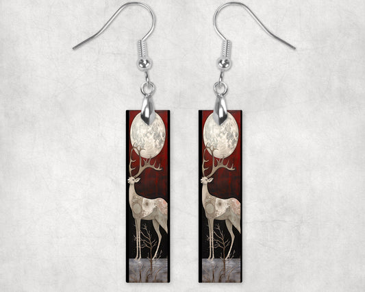 New Release Earrings, Deer Under a White Moon Bar Dangle Printed Earrings Jewelry Handmade
