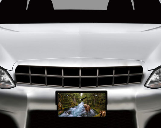 Bear Fishing Aluminum Vanity License Plate Car Accessory Decorative Front Plate