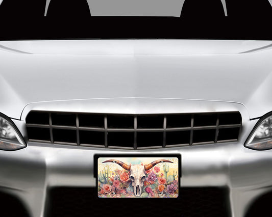 Cow Skull and Succulents Aluminum Vanity License Plate Car Accessory Decorative Front Plate