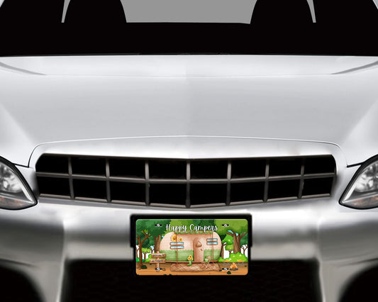 Happy Camper Camp Site Aluminum Vanity License Plate Car Accessory Decorative Front Plate
